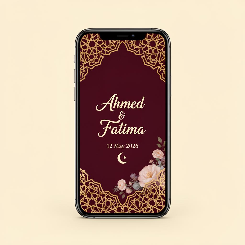 Elegant invitations for Nikah, Mehndi, and Walima — crafted for couples from Sudan to Bangladesh, Pakistan to Palestine. Send to family worldwide in a single elegant link.